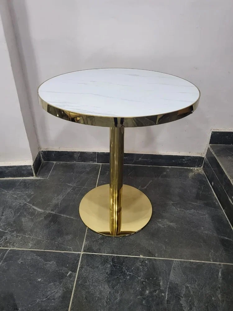 — Round Tabletop Design: Encourages inclusive dining and conversation